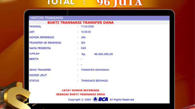 Bukti transfer yang dapat anda lihat adalah bukti SAH / VALID yang langsung di dapatkan melalui bukti transaksi dari Bank yang digunakan untuk pengiriman dana pada rekening pemilik user id. Terima kasih kami sampaikan kepada para pengguna setia DEWALIVE yang telah menggunakan situs kami, sebagai Bandar Terpercaya yang pastinya membayar semua kemenangan member hingga lunas. Apakah DEWALIVE PENIPU ? Reputasi “DEWALIVE TERPERCAYA” sudah sangat melekat.