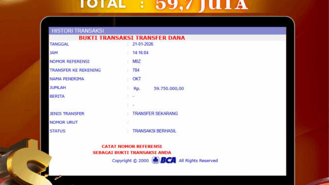 Bukti transfer yang dapat anda lihat adalah bukti SAH / VALID yang langsung di dapatkan melalui bukti transaksi dari Bank yang digunakan untuk pengiriman dana pada rekening pemilik user id. Terima kasih kami sampaikan kepada para pengguna setia DEWALIVE yang telah menggunakan situs kami, sebagai Bandar Terpercaya yang pastinya membayar semua kemenangan member hingga lunas. Apakah DEWALIVE PENIPU ? Reputasi “DEWALIVE TERPERCAYA” sudah sangat melekat.