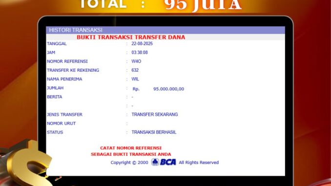 Bukti transfer yang dapat anda lihat adalah bukti SAH / VALID yang langsung di dapatkan melalui bukti transaksi dari Bank yang digunakan untuk pengiriman dana pada rekening pemilik user id. Terima kasih kami sampaikan kepada para pengguna setia DEWALIVE yang telah menggunakan situs kami, sebagai Bandar Terpercaya yang pastinya membayar semua kemenangan member hingga lunas. Apakah DEWALIVE PENIPU ? Reputasi “DEWALIVE TERPERCAYA” sudah sangat melekat.