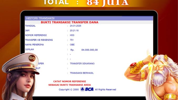 DEWALIVE mengucapkan selamat kepada user id : YON*** yang telah berhasil mendapatkan jackpot pada permainan SLOT DI SWEET BONANZA. Kemenangan sebesar Rp 84.000.000,-. telah dibayarkan LUNAS oleh pihak dewalive kepada pemilik user id setelah yang bersangkutan mengisi formulir withdraw. Proses pencairan dana berlangsung sangat cepat hanya dalam waktu 5-11 menit sudah berada dalam rekening pemilik user id.